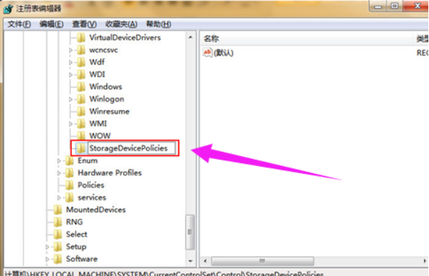 4、在Control文件夹中查找“StorageDevicePolicies”选项