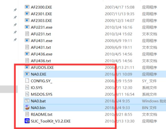 9、电脑启动进入DOS界面后,输入刷机命令(根目录下的BIOS批处理文件):na0。