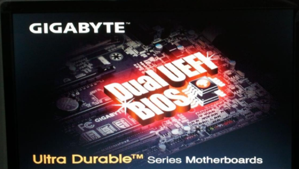 1、将u盘插到主机usb后置接口上,然后重启电脑,屏幕上出现logo界面后连续按del键(Gigabyte的启动热键为del)。