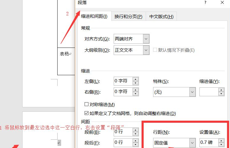 将鼠标放到最左边选中这一空白行,右击设置“段落”,设置“间距”,段后设置“行距:固定值”,设置为“0.7磅”(0.7是最小的Word允许的设置值),确定后,最后一页就消失了。