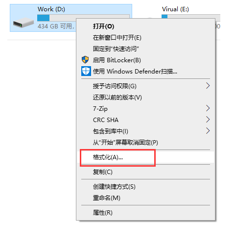 6、如果还是无法解决的话,一般格式化u盘就可以修复u盘打不开的问题了。打开资源管理器,找到并右击无法访问的盘符,然后选择"格式化"选择。不过要注意的是,格式化的话就会导致u盘原有的文件丢失。