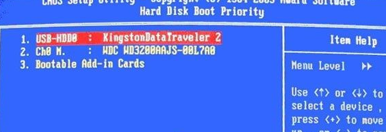 3、在boot选项中,找到USB Device按下回车,再按回车确定。
