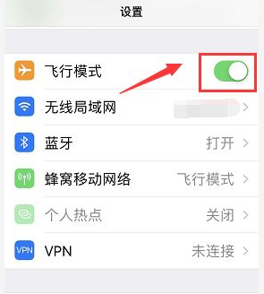 设置中打开飞行模式,然后再关闭飞行模式,重新联网,如下图所示。