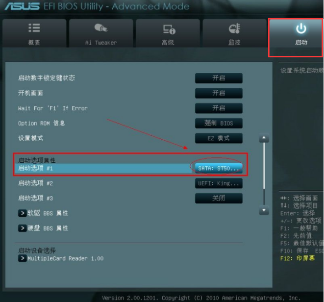 三、切换到“启动”选项下,来到启动选项属性下的“启动选项#1”。