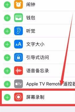 3、我们下拉界面,找到【屏幕录制】,点击屏幕录制前的加号,就可以把它添加到控制中心。添加完成后我们从屏幕底端向上轻扫打开【控制中心】面板,最右下角的同心圆图标就是录屏按钮。