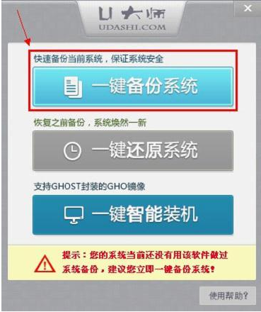U大师一键还原工具,主要功能包含了一键备份系统、一键还原系统与一键智能装机。三种功能既可独立使用,又能相互配合,在保证系统安全的前提下,帮您快速备份当前系统,让系统焕然一新!