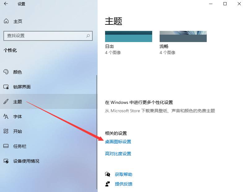 2、在设置里面下拉找到主题点击,然后打开桌面图标设置。