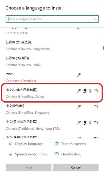 language,找到中文(简体,中国),点击下面的next,然后勾选上方的 set as my display