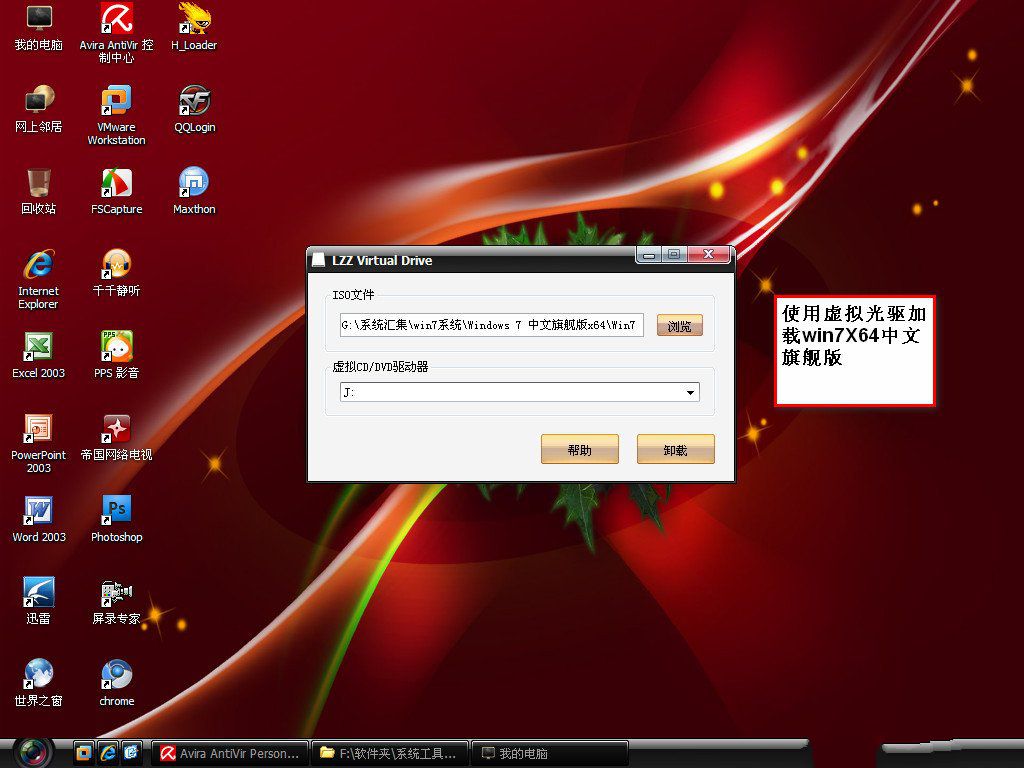 接着打开虚拟光驱(LZZ Virtual Drive)加载下载好的ISO系统镜像。