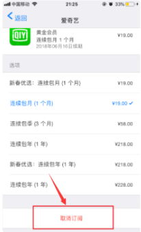 6、下图界面会看到爱奇艺的连续订阅服务,点击底部的“取消订阅”的按钮。