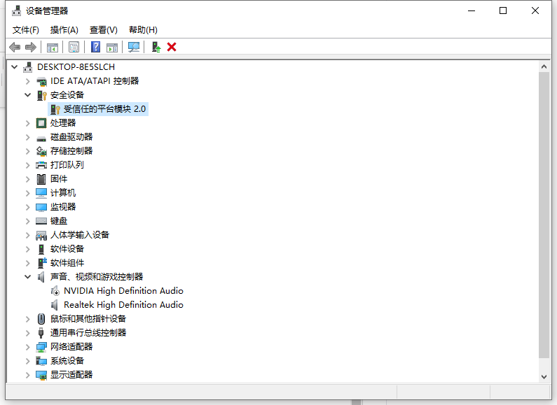2、在安全设备一栏下查看本机是否安装了受信任的平台模块2.0。