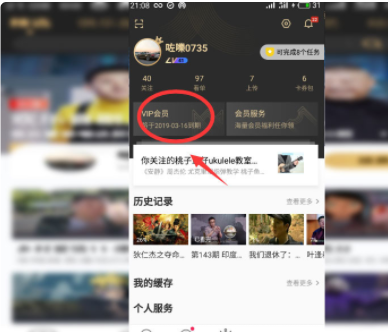 2、点击进入会员选项卡,然后点击如箭头位置。