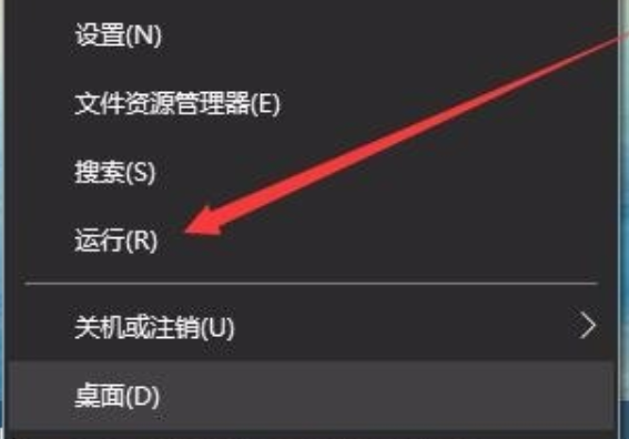 四、然后,回到win10桌面上,右键点击“开始”菜单,选择“运行”点击打开。