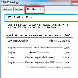 5、这样,我们在上方的选项栏选择最右边的asic,即可查看电脑显卡的显卡体质,如下图。