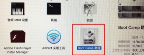 2.进入页面后,我们在实用工具那一栏找到”boot camp助理“。