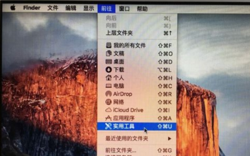 1.首先我们打开苹果笔记本电脑,找到左上方的”前往“选项,在选项中点击实用工具。