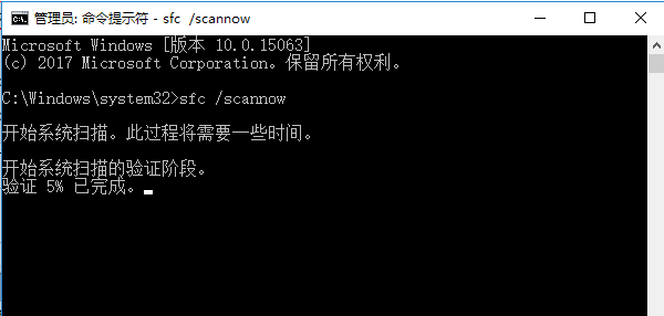 2.进入到命令提示符页面,输入命令“sfc /scannow ”然后按 Enter。系统开始扫描,耐心等待几分钟即可。