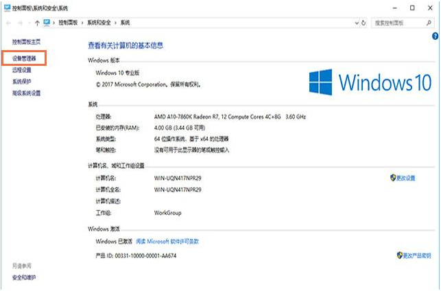 1、我们首先在电脑桌面上,点击【计算机】右击选择【属性】打开,这个时候弹出页面,点击【设备管理器】。