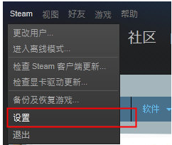 1.进入是steam主界面,点击左上角steam图标弹出菜单,然后点击设置,如图所示: