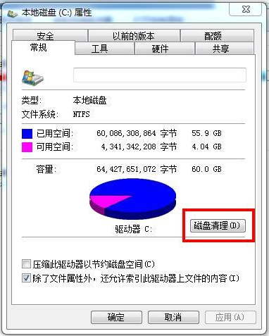 步骤1:“我的电脑”—选中C盘,右键,选择“属性”—点击“磁盘清理”。