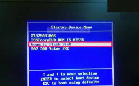 2.首先,我们进入快速启动窗口,在窗口中找到自己u盘的名字。这是GenericFlashDisk,这是我u盘的名字,有些可能是USB-HDD。