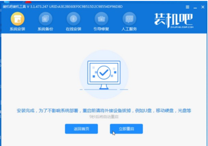 6.在PE系统中打开桌面上的安装工具,选择要安装的windows系统安装在c盘上。安装完成后耐心等待重启。