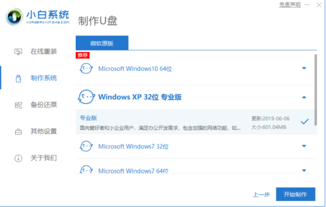 2.点击查看XP系统,然后点击下载系统,制作u盘。