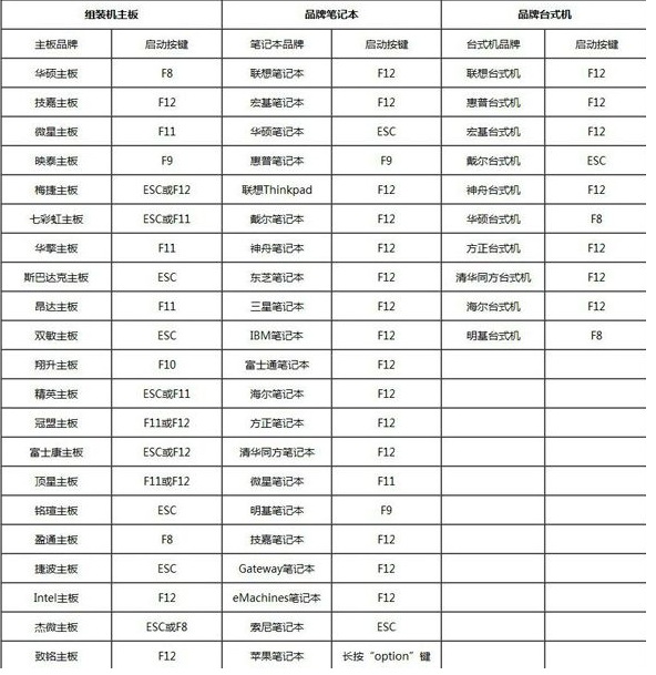 5.安装完成后,我们按F12进入启动项页面。如果不知道自己电脑的启动热键,可以查看下图。