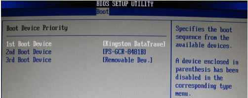 3.将大白菜U盘插入电脑USB接口,重新打开电脑。屏幕上出现启动图片后,按U盘启动快捷键,进入启动项设置界面,将U盘设置为启动项设置界面(通常带USB的选项是U盘)。