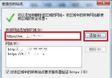 4、在弹出的对话框中将需要登录的网站填写如对话框中,点击添加。