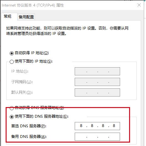 3、【常规】下选择【使用下面的DNS服务器地址(E):】——【首选DNS服务器】填写【114.114.114.114】——点击【确定】