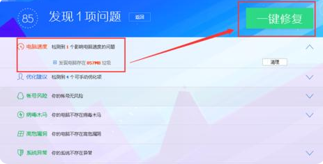 2、扫描到垃圾,点击“一键修复”