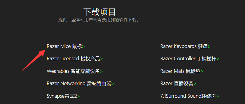 2、来到下载项目后可以看到显示出所有系列的雷蛇产品,我们这里选择雷蛇鼠标产品进入。