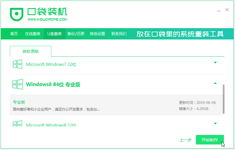 以上便是使用口袋装机工具制作u盘重装win8系统教程,有不懂如何重装的电脑新手用户都可以去下载安装使用该工具哦。