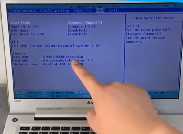 3、在boot界面就可以看到各个启动项了。一般情况下第一启动项是硬盘系统。如果想要u盘启动的话,记得先插入u盘启动盘进电脑后,再在boot中找到USB HDD或对应U盘名称的启动项。