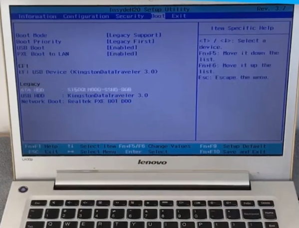 4、然后使用FN和F6将u盘启动项调到第一位,点击FN加F10保存设置即可。(有些电脑是使用上下键调整顺序)