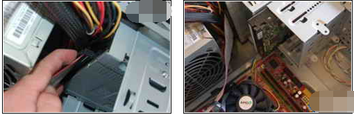 16、目前的主机板上都有很多组SATA,随便插一个都可以正常使用, 再来就可以把电源线接上,旧款的电源供应器的主电源线会与现在的主机板有点差异, 少了四只脚,不过仍然是可以正常的运作,也不用担心会插错边。