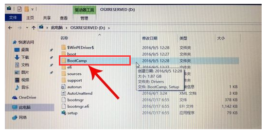18.我们往下找到“BootCamp”文件夹,双击打开。