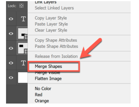 在此处,按“合并图层”或“合并形状”以将您选择的图层合并在一起。