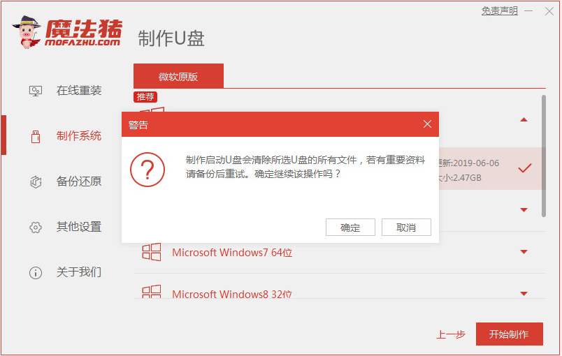 1、首先关闭计算机上运行的杀毒软件,然后打开魔法猪系统重装大师然后选择制作系统里面的[U盘模式]。