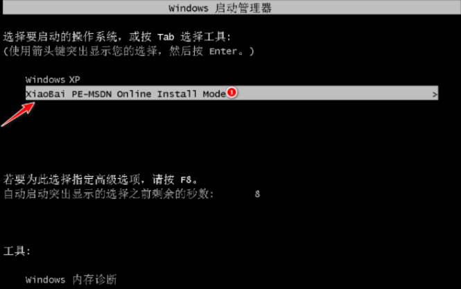 5.在重新启动计算机之后选择XiaoBai-PE并进入WindowsPE系统,软件将自动帮助我们开始安装系统。