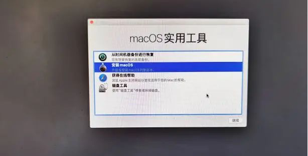 7、回车后,屏幕上会跑代码,然后过一段时间后就会进入安装界面,如果不出意外,应该进入了 macOS 实用工具,选择磁盘工具,然后提前先准备一个 30 G以上的分区。
