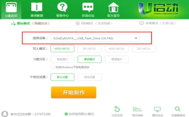 备注:关于写入模式和U盘分区,U启动为您推荐的为较佳模式,若无特别需求,您无需做任何改动。
