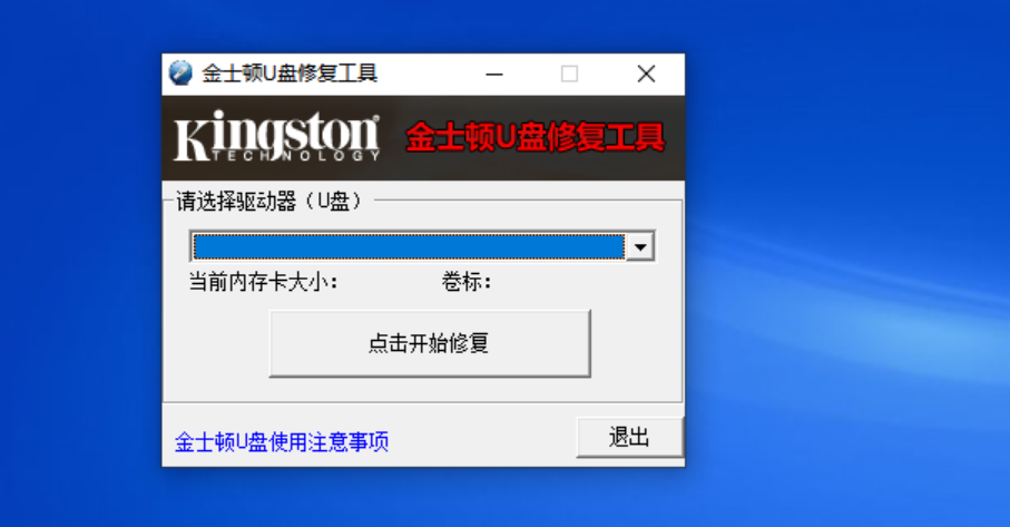 它的界面比较小,操作很简单,会提供使用的注意事项,帮助用户熟悉软件使用流程。对于新手用户来说,要操作这个软件并不难。不过,它对u盘的品牌有限制,只能对金士顿官方出品的u盘有用,其他品牌的u盘无法使用。
