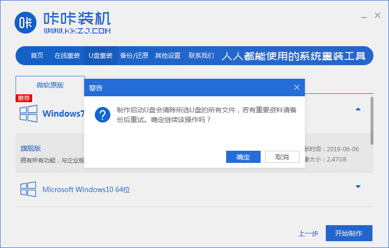 1、打开咔咔装机选择系统制作U盘启动盘;