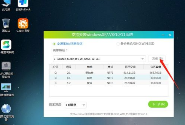 3、打开工具后,点击浏览选择U盘中的下载好的win10专业版系统镜像ISO。