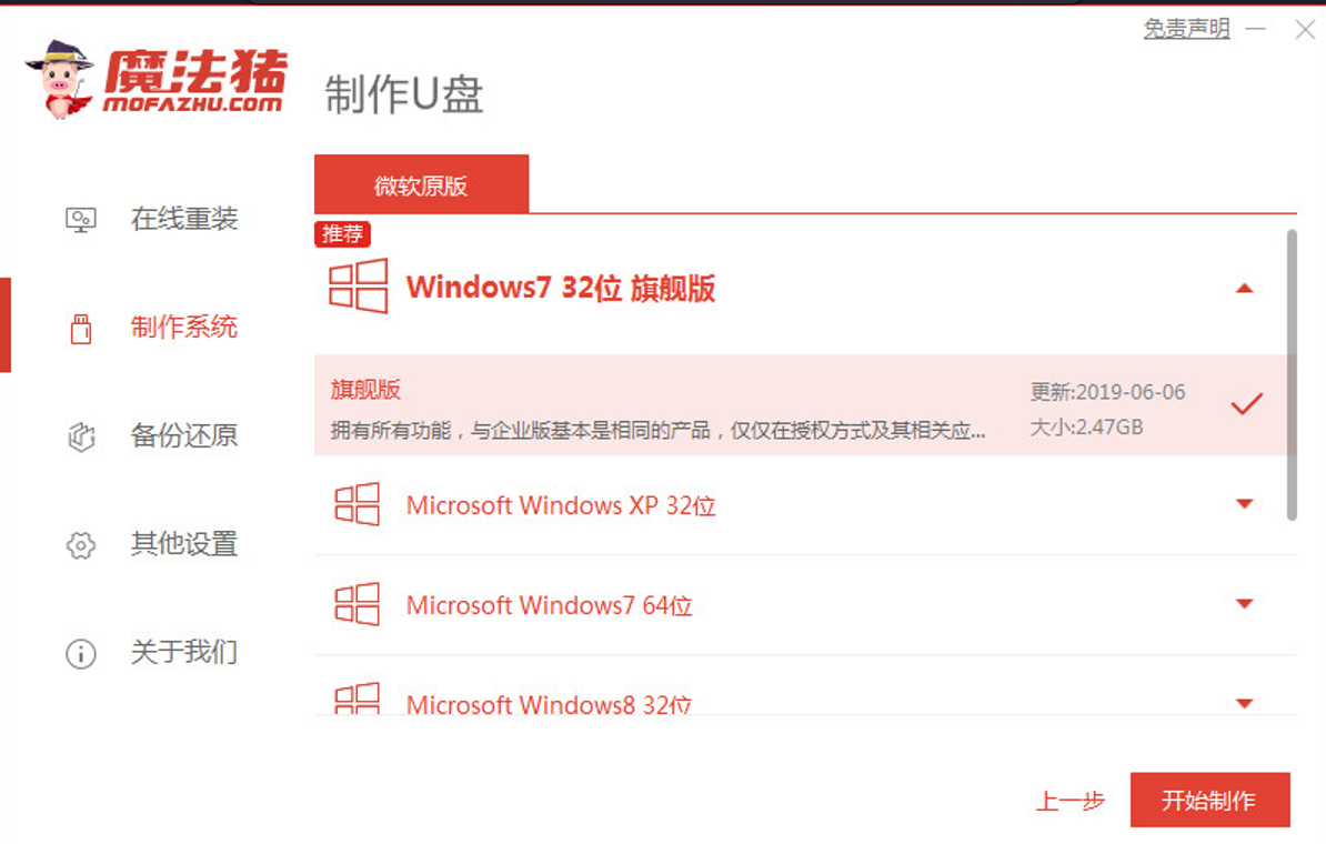 2、选择要安装的系统版本,嗲你开始制作。