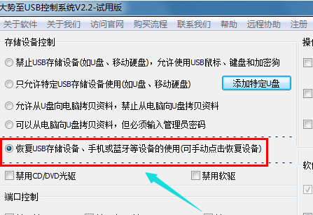 运行该程序,勾选“恢复USB存储设备”项就可以正常使用U盘。