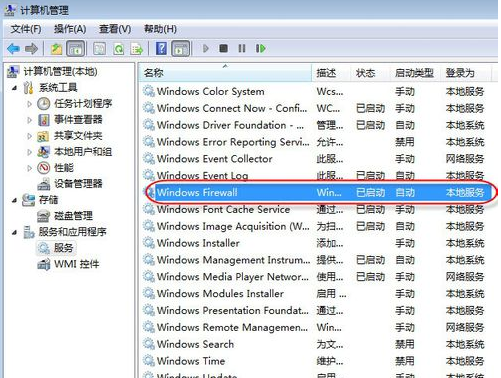 设置完成后,返回“计算机管理”窗口,可以看到“Windows Firewall”服务已处于自动已启动状态。