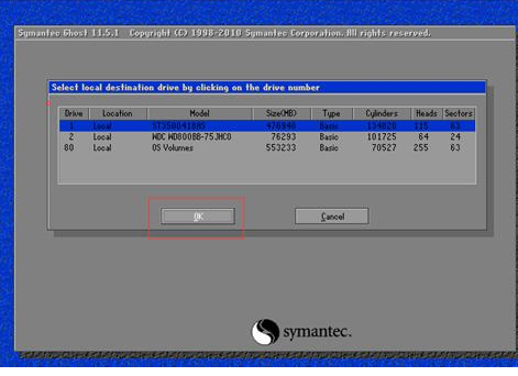 系统装到里面的那个硬盘,点OK即可